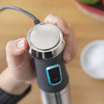 1200-ვტ ხელის მიქსერი, CrossBlades ტექნოლოგიით, შხეფებისგან დამცავი პირი და სიჩქარის რეგულატორი Turbo ფუნქციით. მოიცავს 800 მლ კონტეინერს თავსახურით.