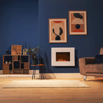 დეკორატიული ელექტრო ბუხარი 2000 ვატი სიმძლავრით. 2 ინტენსივობა: 1000 ვატი და 2000 ვატი. დისტანციური მართვა. ბრტყელი მინის პანელი. რეგულირებადი ალი. ყოველკვირეული ტაიმერი. ღია კარის სენსორი.