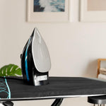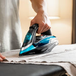 ულტრაძლიერი უთო, 3100 ვტ მაღალი გამძლეობით ანოდირებული ძირით. ავტომატური წყლის ტუმბო და სენსორი. ორმაგი ძირი, 75 გ/წთ უწყვეტი ორთქლის სიჩქარე და 285 გ/წთ ორთქლის გამოყოფა.