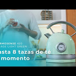 ვინტაჟური სტილის ჩაიდანი, 2200 W სიმძლავრე და 1.8-ლიტრიანი ტევადობა.მახასიათებლები: ჩაიდანი 2200 W სიმძლავრით წყლის სწრაფად ადუღებისთვის. 1.8-ლიტრიანი ტევადობა, რომლის მეშვეობითაც შეგიძლიათ მოამზადოთ 8 ჭიქა ჩაი. ჩაშენებული ტემპერატურის მაჩვენებელი, რომ ყოველთვის ნახოთ წყლის ან ჩაის ტემპერატურა. მაღალი ხარისხის უჟანგავი...