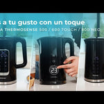 რეგულირებადი ტემპერატურა 5°C ინტერვალებით, 40-დან 100°C-მდე, 4 წინასწარ დაყენებული ტემპერატურული დონით: 70°C (მწვანე ჩაი), 80°C (ჩაი), 90°C (ყავა), 100°C (დუღილი).