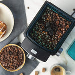 ელექტრო ყავის საფქვავი ელეგანტური უჟანგავი ფოლადის დიზაინით. ისიამოვნეთ საუკეთესო ყავით.