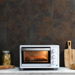 მრავალფუნქციური ელექტრო ტოსტერი ღუმელი 23 ლიტრიანი ტევადობით და ორმაგი შუშის კარით.