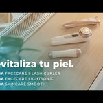 ლურჯი და წითელი შუქით, სითბოთი, ვიბრაციითა და EMS ფუნქციით სახის ფოტოთერაპიული მასაჟორი. აქვს ეკრანი და მუშაობს ბატარეაზე. მახასიათებლები: 3 სახის მოვლის რეჟიმი: FaceCare LightSonic-ს აქვს 3 ფუნქცია ყოვლისმომცველი სახის მოვლისთვის: ღრმა გაწმენდა, შეწოვა და დამატენიანებელი. სითბოს ფუნქცია: ხელს...