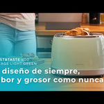 ორმაგი სლოტის ტოსტერი ორი ნაჭერი ტოსტის ტევადობითა და 850 ვტ მაქსიმალური სიმძლავრით.
