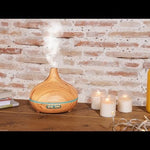 Ultrasonic humidifier with aroma diffuser, up to 300-ml tank and 7 LED colours.
