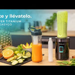 Smoothie blender with portable bottle, 4 blades coated with black titanium, and 350 W power.