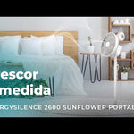 Ventilador de batería 3 en 1, 22 W con motor BLDC, 13” de diámetro, larga autonomía gracias a su batería de 2600 mAh, pantalla LED, control remoto, control táctil y oscilación horizontal y vertical.