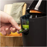 ელექტრო წვენსაწური 600 ვტ, Soft Touch კორპუსი, უჟანგავი ფოლადის ფილტრი და ორი მოხსნადი კონუსი.