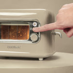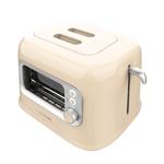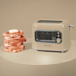 Tostadora con ventana de cristal, diseño retro y cubierta antipolvo.