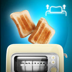 Tostadora con ventana de cristal, diseño retro y cubierta antipolvo.