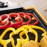 გამძლე ალუმინის ფირფიტა, ცხიმისა და ზეთის გარეშე მომზადებისთვის.
