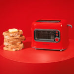 ტოსტერი მინის ფანჯრით, რეტრო დიზაინითა და მტვრის დამცავით.
